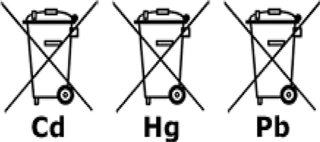 Schadstoffhaltige Batterien bzw. Akkus sind mit den folgenden Symbolen gekennzeichnet, um auf das Hausmüll-Entsorgungsverbot hinzuweisen. Unter dem Zeichen ist das chemische Symbol für das Schwermetall angegeben: